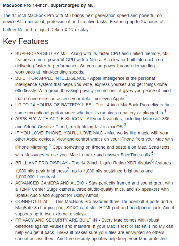 Apple MDE14X/A, MacBook Pro, 14" Liquid Retina XDR Display, M5 chip, 16GB RAM, 1TB SSD, Wireless AX+Bluetooth, MacOS, Space Black,