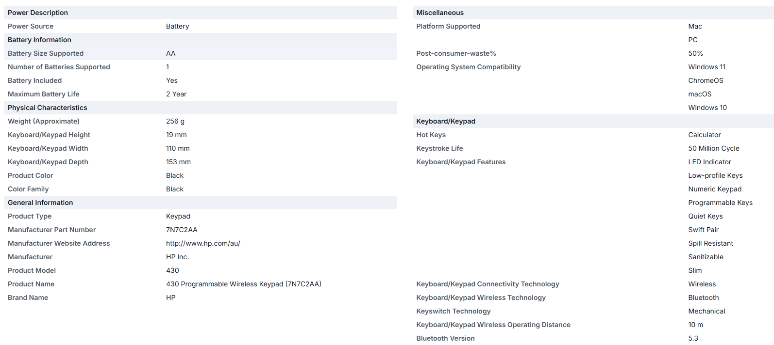 HP 7N7C2AA, 430 Programmable WL Keypad Asia Pacific