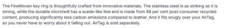 Apple MGG14FE/A, AirTag FineWoven Key Ring, Navy