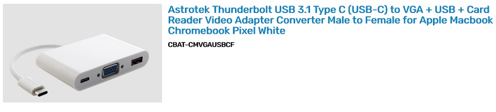 Astrotek AT-CMVGAUSBCF, Thunderbolt USB 3.1 Type C to VGA, USB, Card Reader, Video Adapter Converter, Male to Female for Apple Macbook