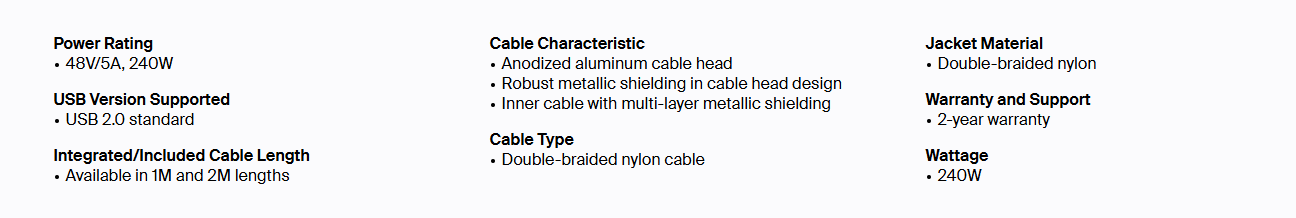 Belkin CAB015BT2MWH, BoostCharge Braided USB-C to USB-C PD 3.1 Cable, 2M, 5A/240W, 480Mbps, 30K+ Bends, Apple iPhone, White
