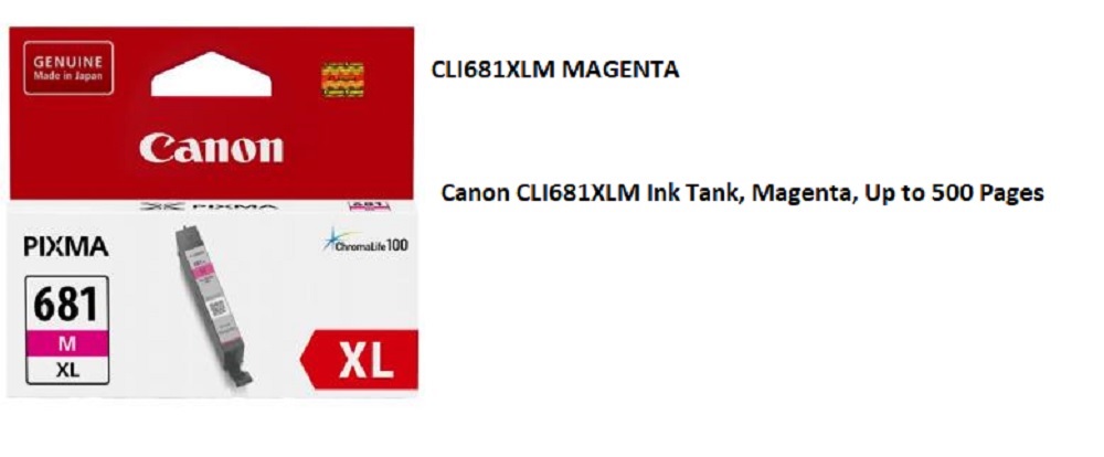 The Canon CLI681XLM Ink Cartridge is designed for reliable and high-quality printing. This magenta ink cartridge ensures vivid and long-lasting color prints, making it perfect for both professional and personal use. Compatible with a range of Canon printers, this OEM cartridge offers consistent performance and superior results. Experience the ultimate printing experience with the Canon CLI681XLM.