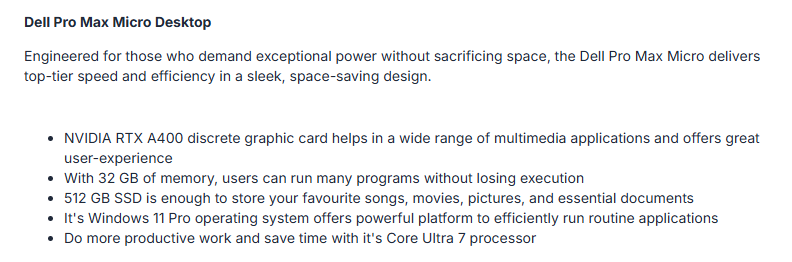 Dell CTO002_FCM2250_AU, Pro Max Micro FCM2250, Intel Core Ultra 7-265, 32GB (2x16GB) DDR5 RAM, 512GB NVMe SSD, Nvidia RTX A400 4GB GDDR6, Keyboard+Mouse, Wi-Fi 7+Bluetooth, Windows 11 Pro