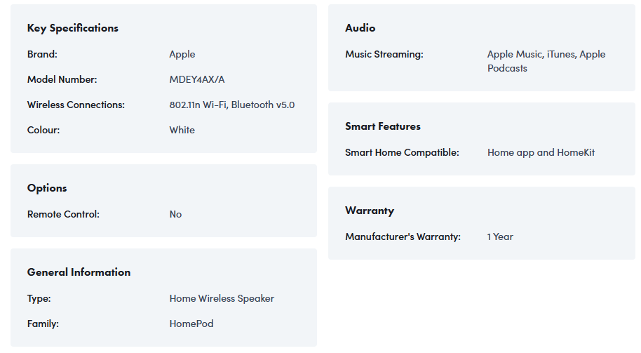 Apple MDEY4AX/A, HomePod (2nd Gen), Spatial Audio with high-excursion woofer and Tweeter Array, Wi-Fi 802.11n Connectivity for Easy Streaming, Touch Controls, Stereo Pair-Capable, Multiroom Audio, White