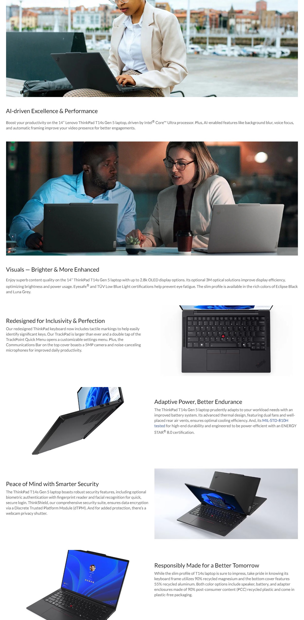 Various docking solutions supported via Thunderbolt™ / USB-C®. For more compatible docking solutions, please visit Docking for ThinkPad® T14s Gen 5
