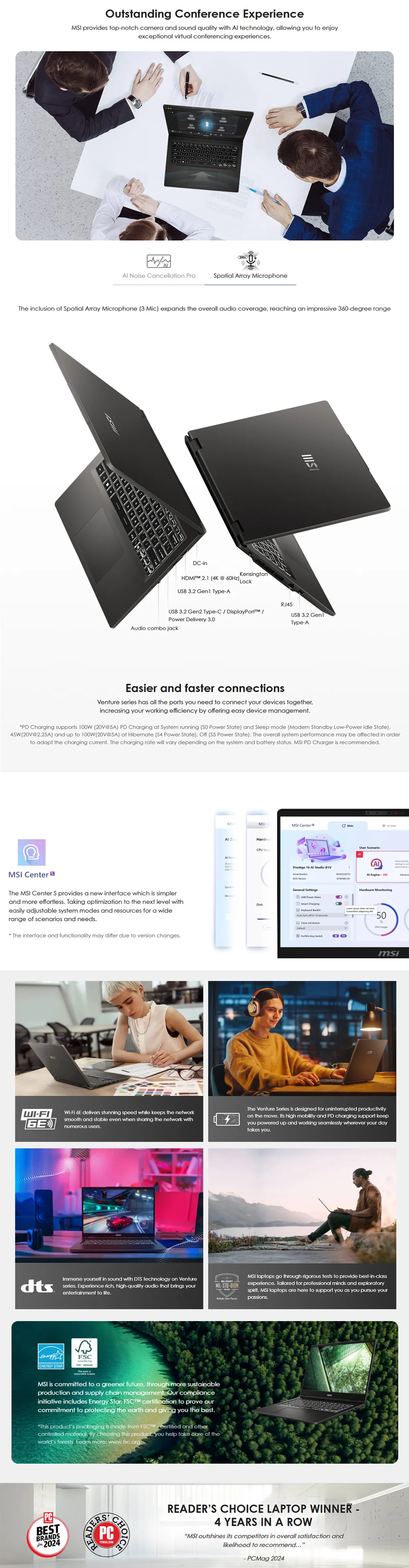 MSI VENTURE 14 AI A1MG-010AU, 14" 2.8K OLED Screen, Intel Core Ultra 5-125H, 16GB DDR5 RAM, 512GB NVMe SSD, Wireless AX+Bluetooth, Windows 11 Home