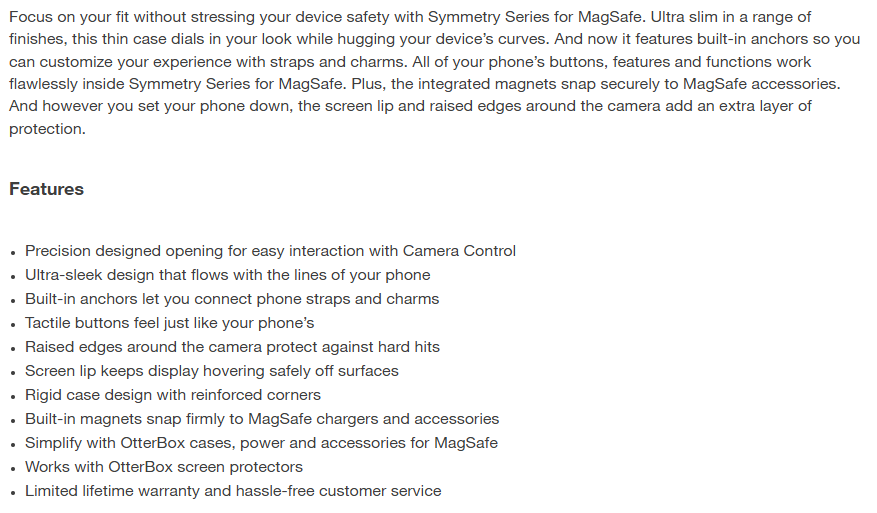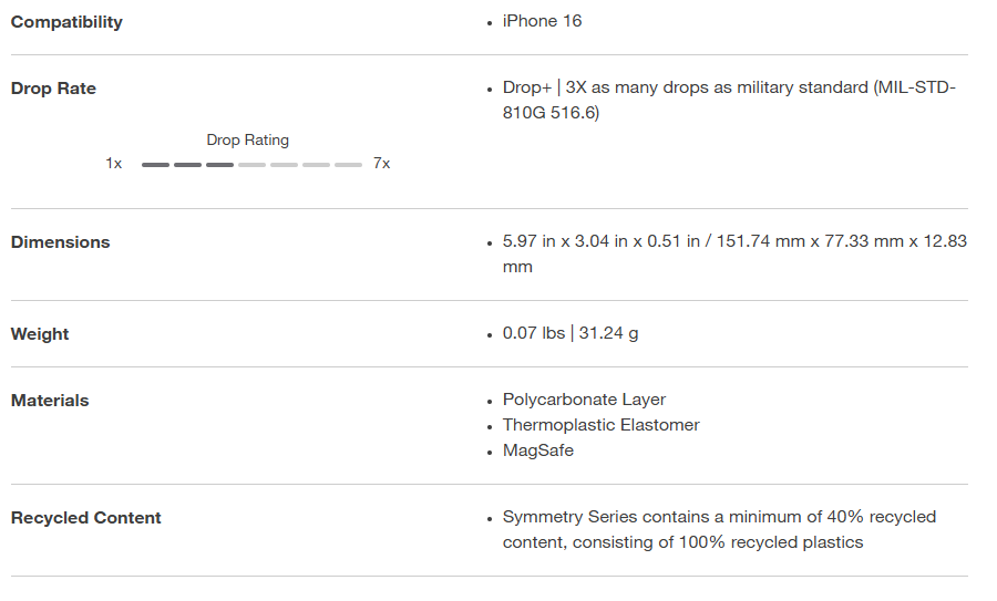 OtterBox 77-96542, Symmetry MagSafe Apple iPhone 16 (6.1') Case, Antimicrobial, DROP+ 3X Military Standard, Raised Edges, Black,