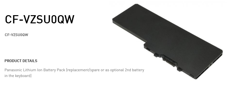 Panasonic CF-VZSU0QW, Lithium Ion Battery for CF-20, FZ-A2, 1 Year Warranty