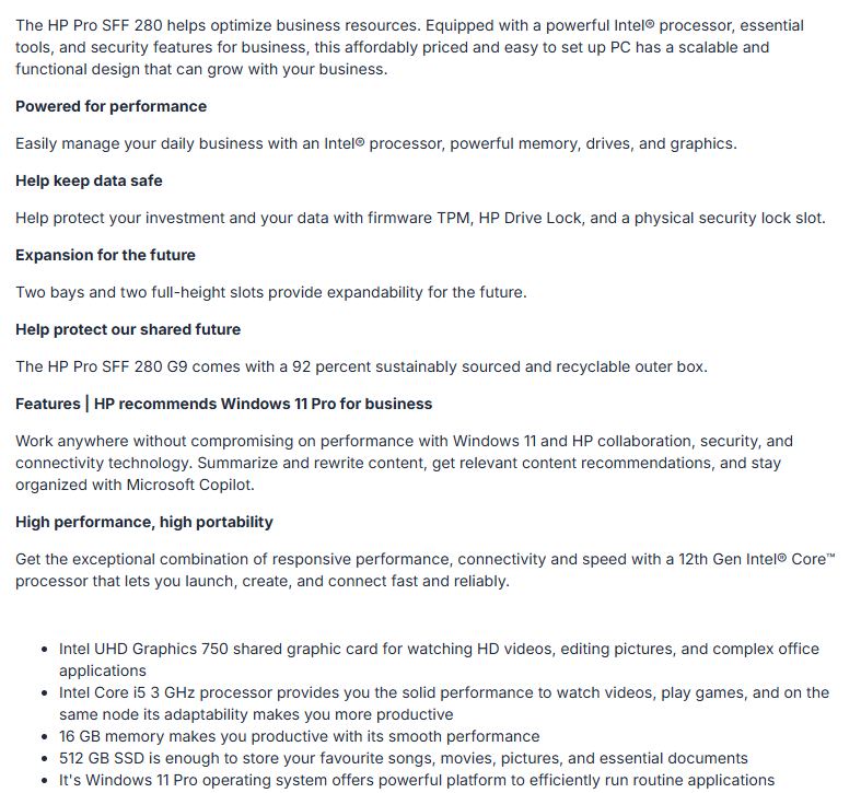HP C9TT5AT, Pro SFF 280 G9, Intel Core i5-12500, 16GB DDR4 RAM, 512GB NVMe SSD, Keyboard+Mouse, Wireless 802.11AC+Bluetoorh, Windows 11 Pro