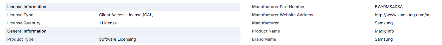 Samsung MagicInfo Remote Management Software Client License provides access to full remote management and asset control for Samsung Large Format Displays (LFD).