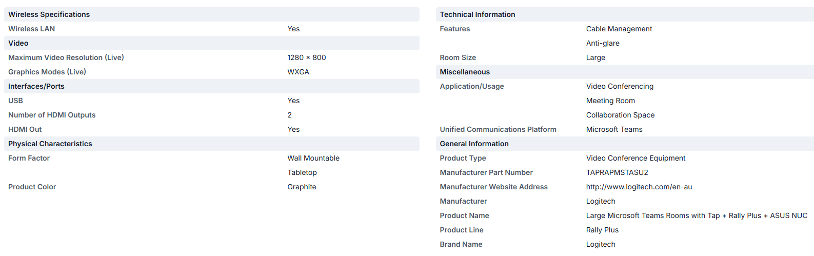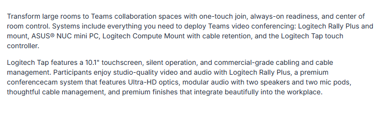 Logitech TAPRAPMSTASU2, Tap for MS Teams, Large Room, Windows 11