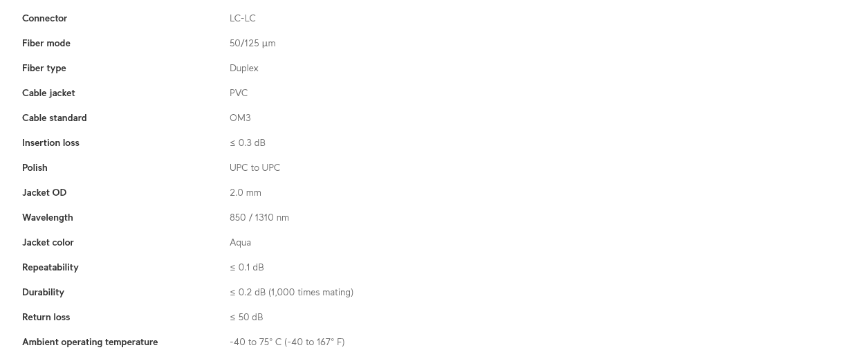 Ubiquiti UACC-OFC-MM-1M, MultiMode 10 Gbps OM3 Duplex LC Cable, 1m, Single Unit,10 Gbps Throughput, LC-LC Connector